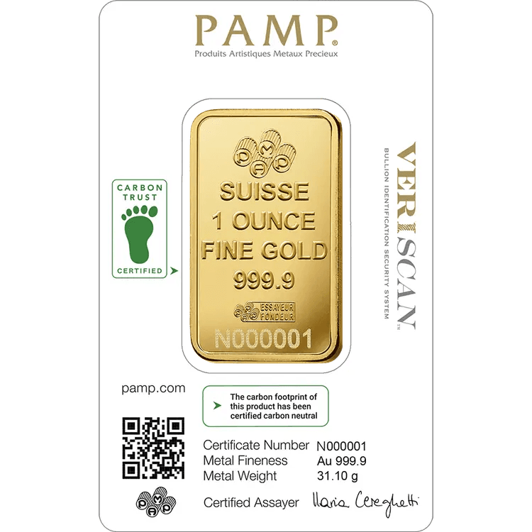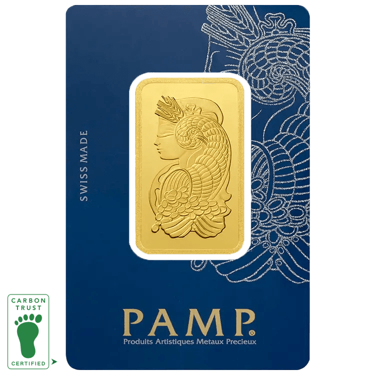 Developed by MKS PAMP, this 1 oz Lady Fortuna minted gold bar has been certified as Carbon Neutral by the Carbon Trust.