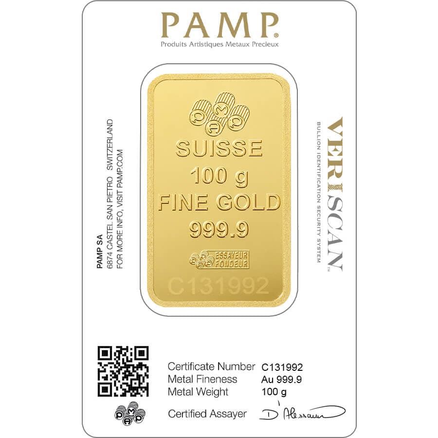 The 100g gold bar made by PAMP Suisse is stamped with the beautiful Lady Fortuna. PAMP Suisse is the world's leading Bullion brand, with an array of popular coins ideal for your personal collection or investment purchases.