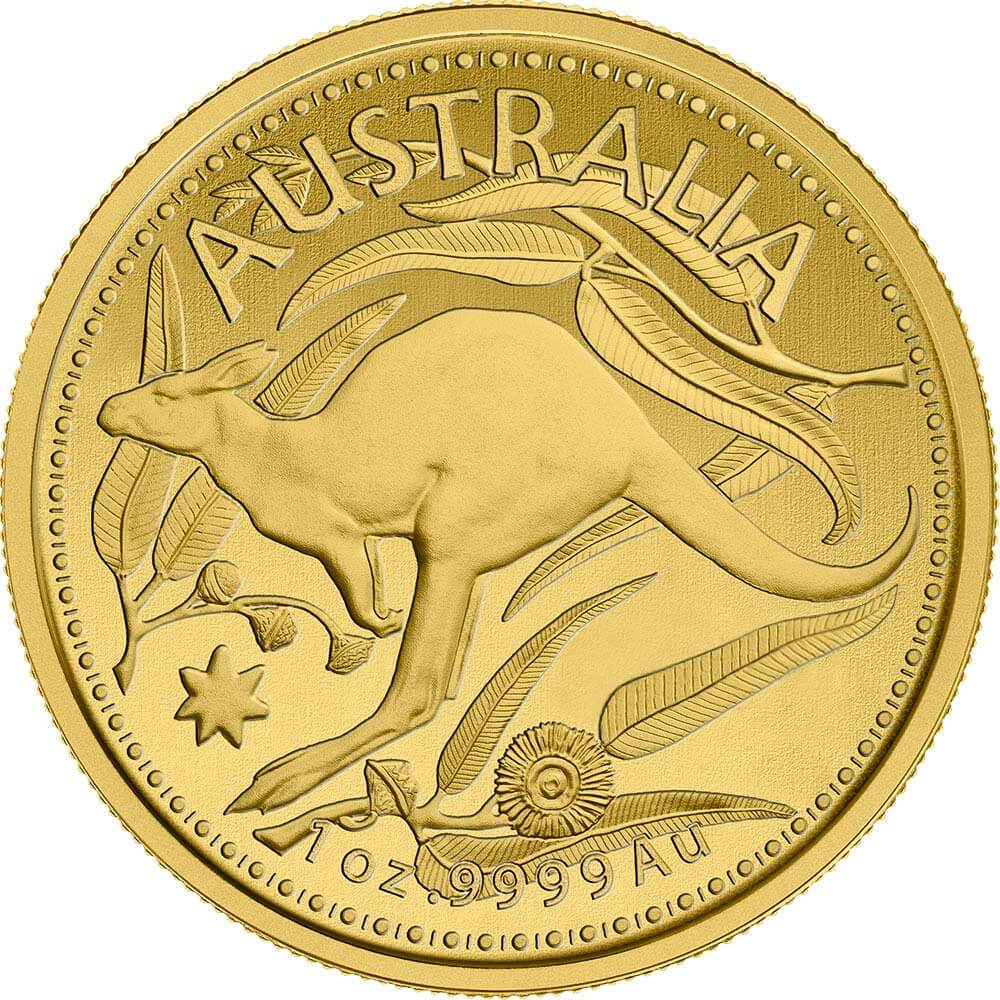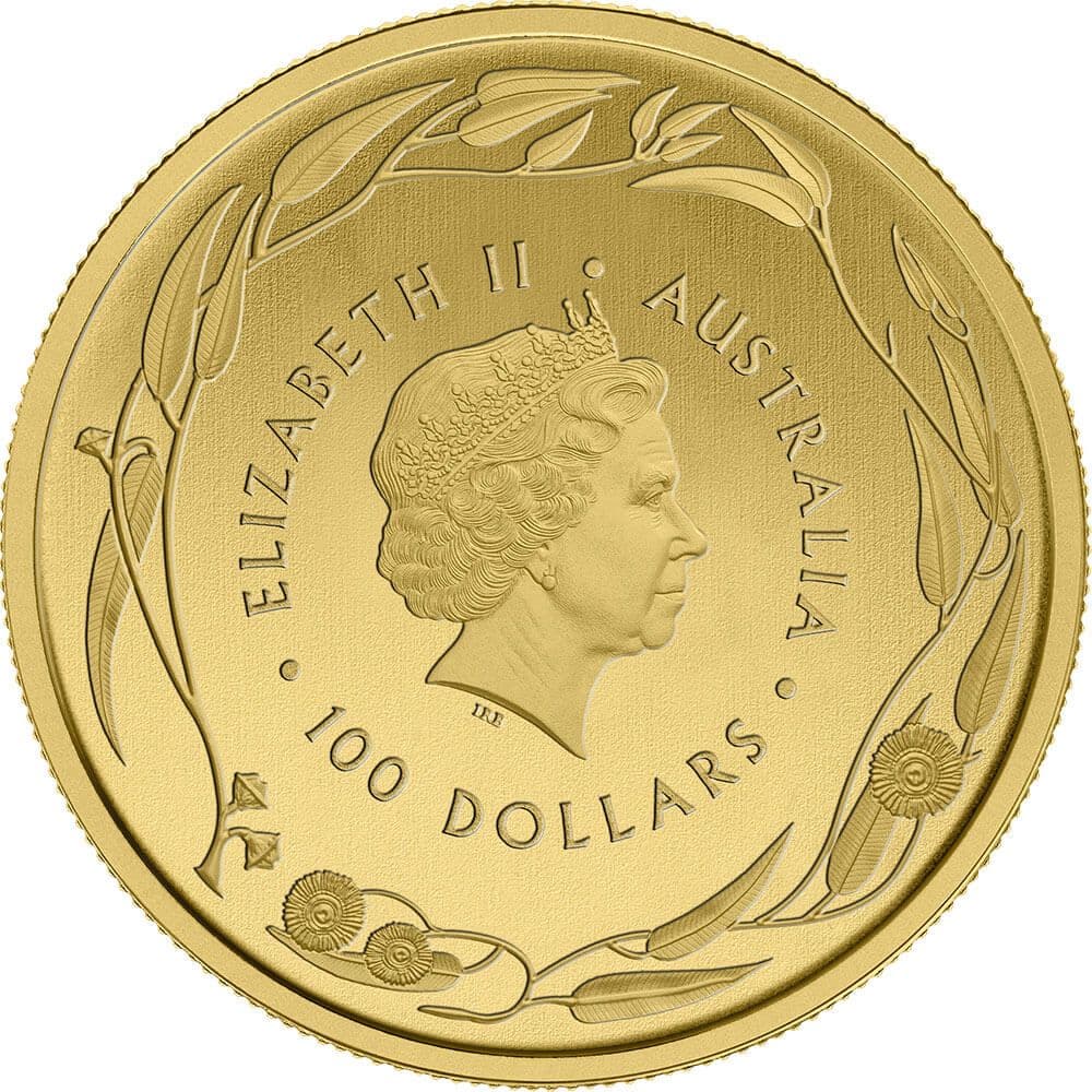 Auf der Vorderseite sehen wir das Seitenprofil von Königin Elizabeth II. sowie ihren Namen, den Herstellungsort, das Herstellungsjahr, und den Nennwert. Auf der Rückseite der Münze sehen wir ein klassisches rotes Känguru mit dem Commonwealth-Stern. Über dem Design ist "Australia" eingraviert und am unteren Rand ist das Gewicht und die Reinheit des Goldes zu sehen. Außerdem enthält jede Seite der Münze zur Verzierung die Blätter des blauen Eukalyptus.
