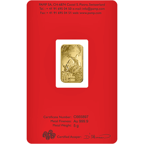5 Gramm Goldbarren - PAMP Suisse Lunar Ochse