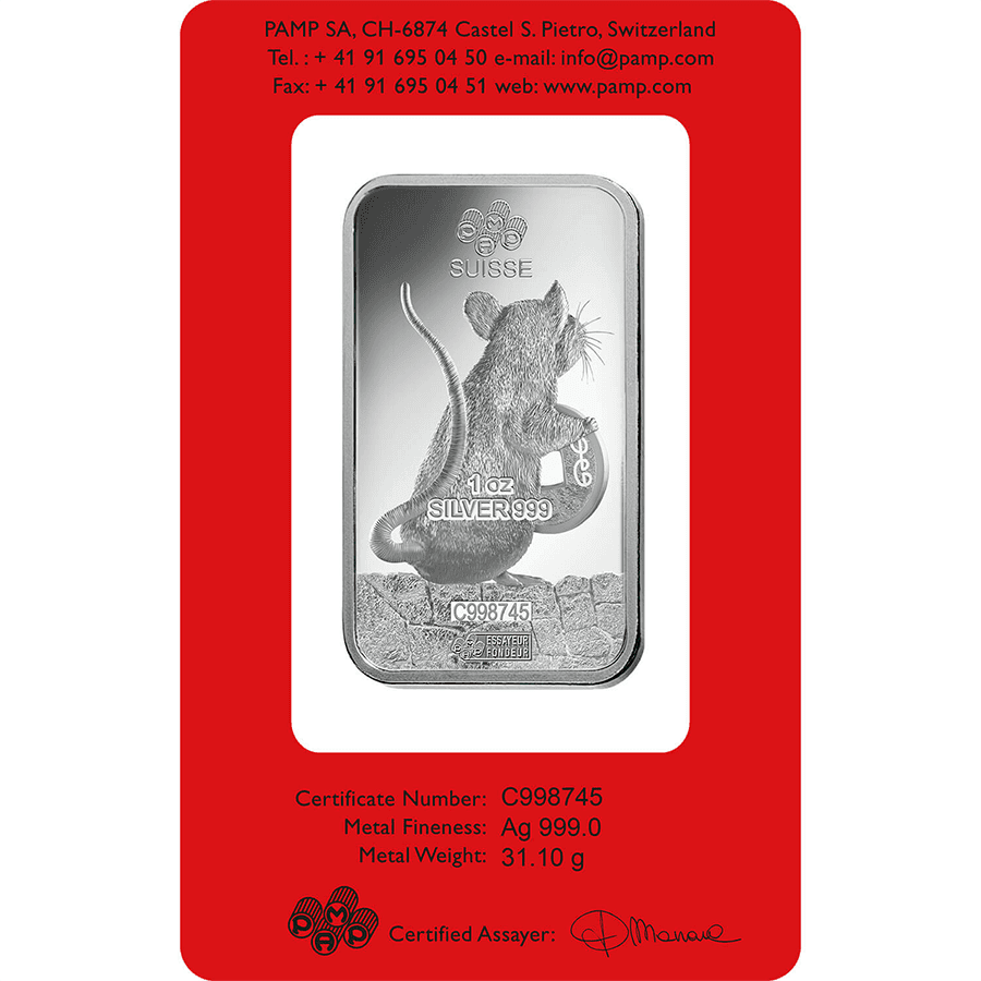 1 Unze Silberbarren - PAMP Suisse Lunar Ratte