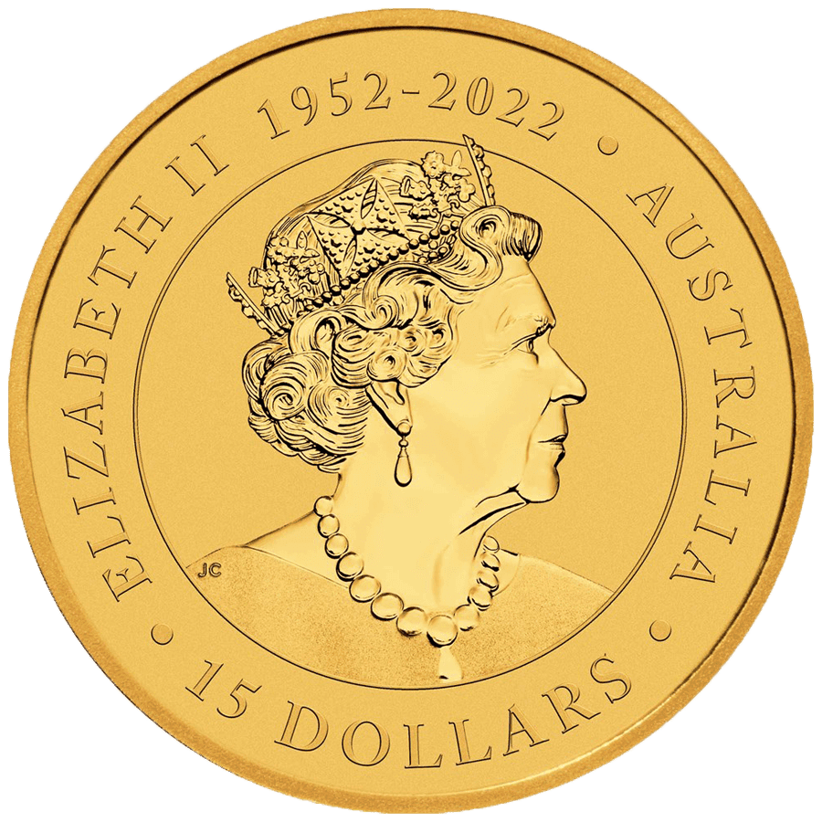 Auf dieser Goldmünze sind das ikonische australische Wappen und Königin Elizabeth II. in wunderschöner Handarbeit abgebildet. Mit einem Feingehalt von 999,9 ‰ können Sie diese australische Goldmünze als gesetzliches Zahlungsmittel zu Ihren Edelmetallersparnissen hinzufügen.