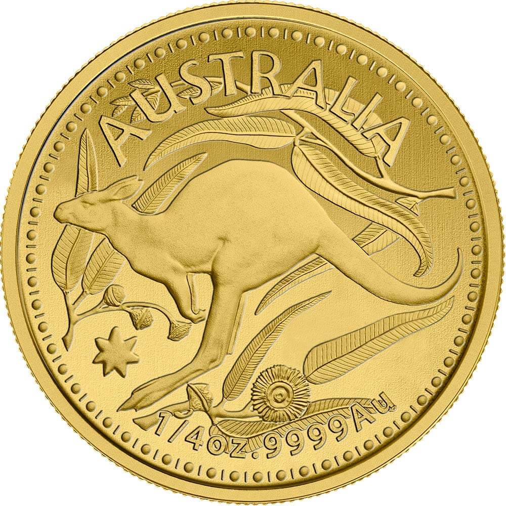 Auf der Vorderseite sehen wir das Seitenprofil von Königin Elizabeth II. sowie ihren Namen, den Herstellungsort, das Herstellungsjahr, und den Nennwert. Auf der Rückseite der Münze sehen wir ein klassisches rotes Känguru mit dem Commonwealth-Stern. Über dem Design ist "Australia" eingraviert und am unteren Rand ist das Gewicht und die Reinheit des Goldes zu sehen. Außerdem enthält jede Seite der Münze zur Verzierung die Blätter des blauen Eukalyptus.
