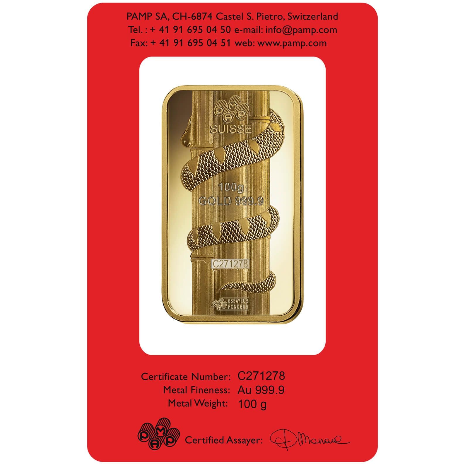 100 Gramm Goldbarren - PAMP Suisse Lunar Schlange