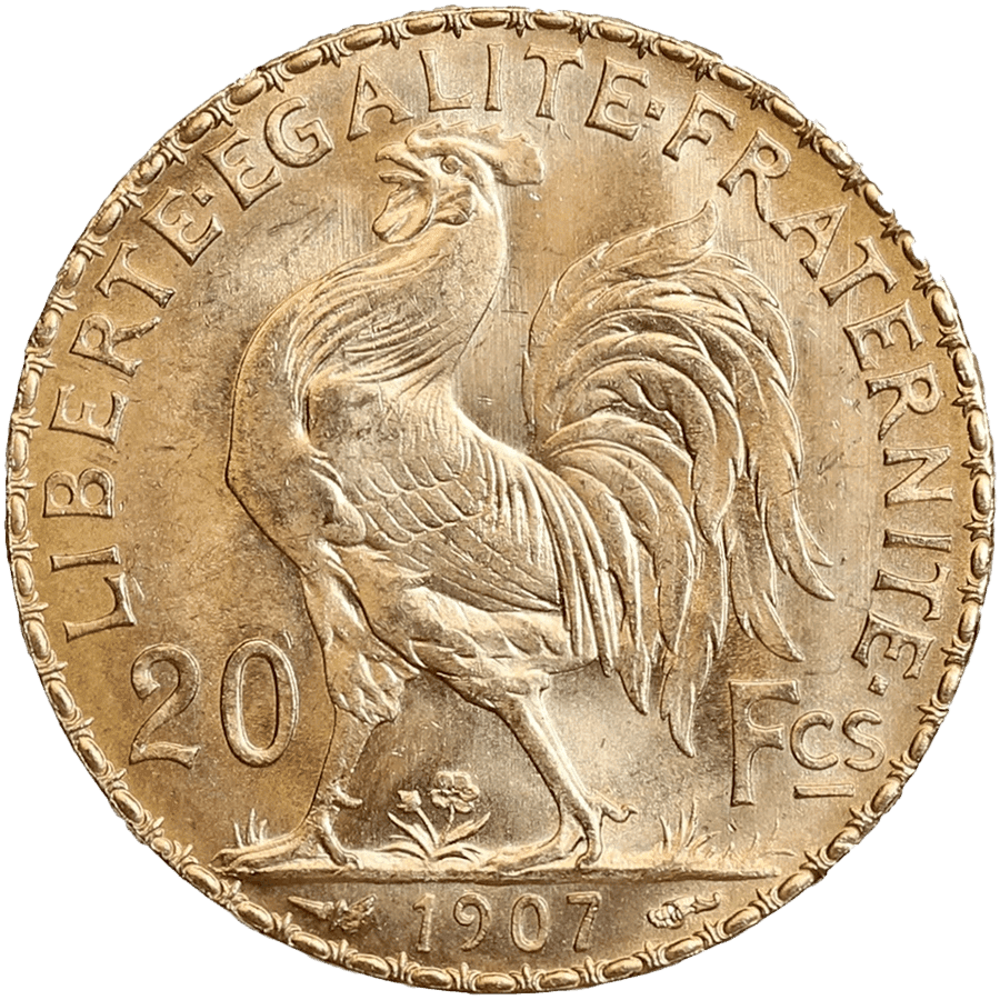 - Rückseite: Stolzer gallischer Hahn (Coq), das Wappentier Frankreichs, umgeben von der Aufschrift „LIBERTÉ ÉGALITÉ FRATERNITÉ“ und dem Prägejahr „1907“.