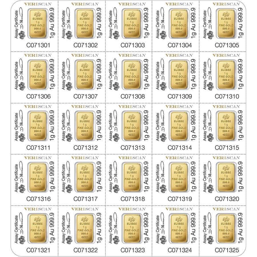 - Die 25x1 g Goldbarren haben einen Feingehalt von 999,9