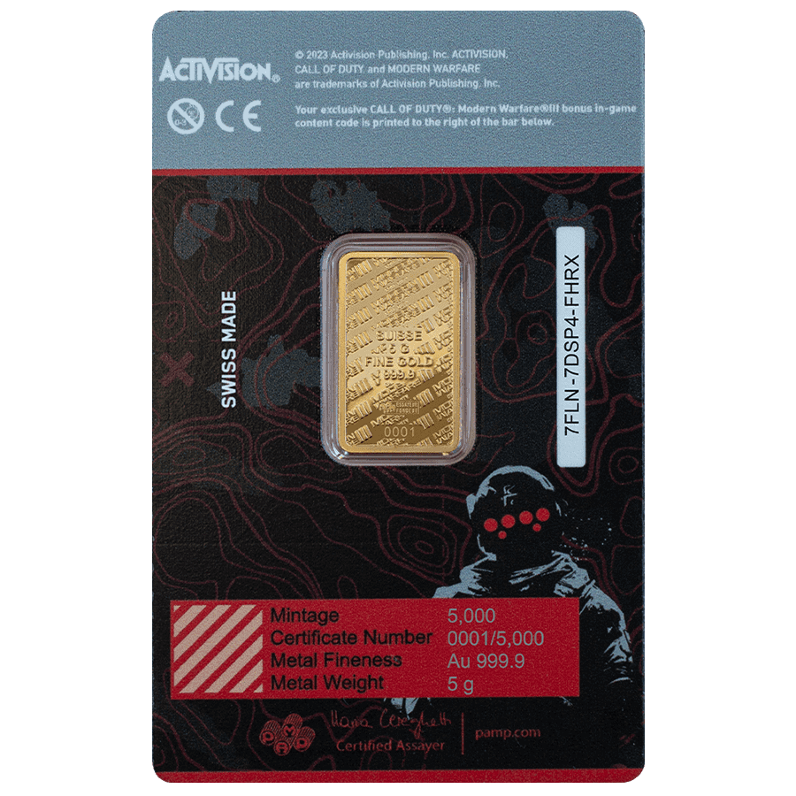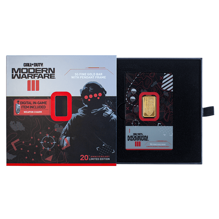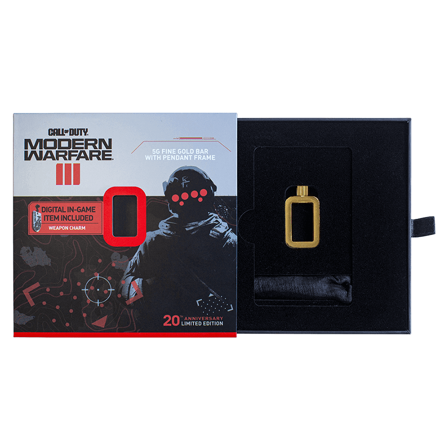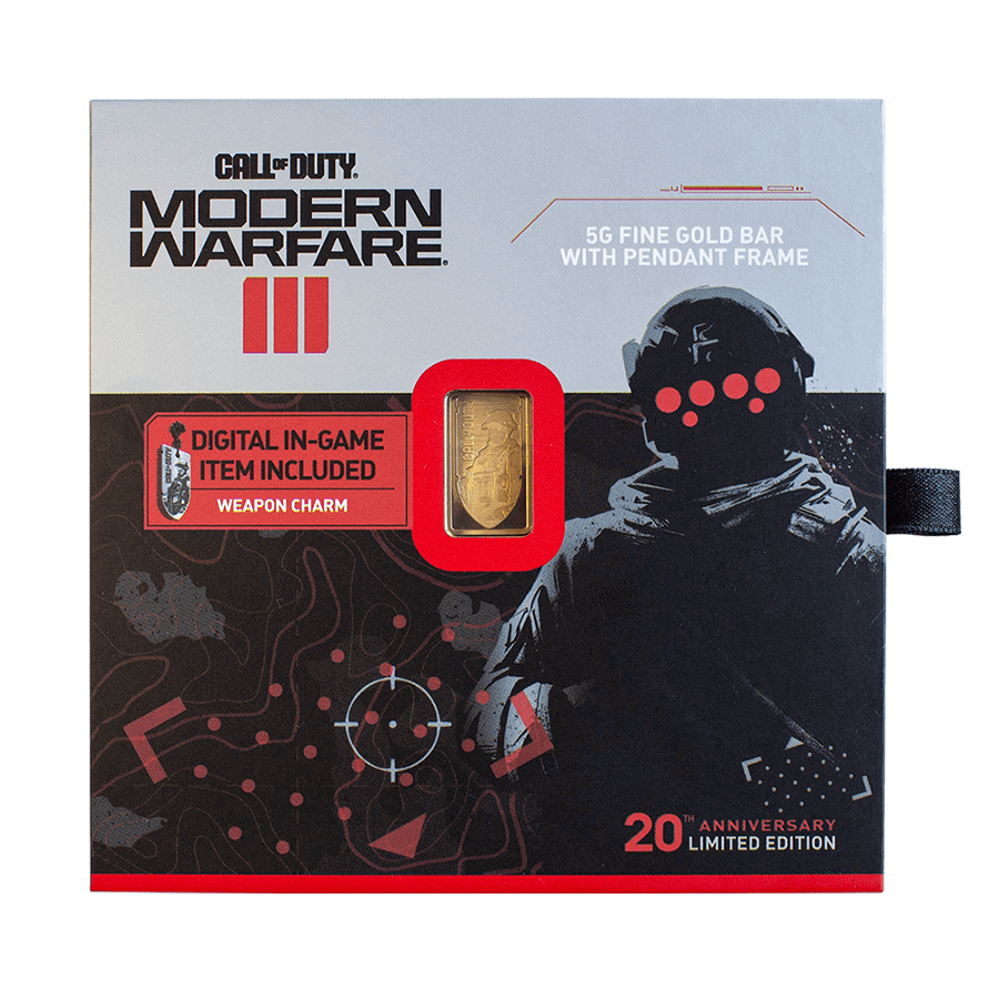 Da dieser Goldbarren nicht nur eine Investition, sondern auch ein Sammlerstück ist, kann er an Generationen von Spielern und Call of Duty-Fans weitergegeben werden. Das macht ihn zu einem besonderen und unvergesslichen Objekt, mit dem die Veröffentlichung von Modern Warfare III und das 20-jährige Jubiläum von Call of Duty gefeiert werden.