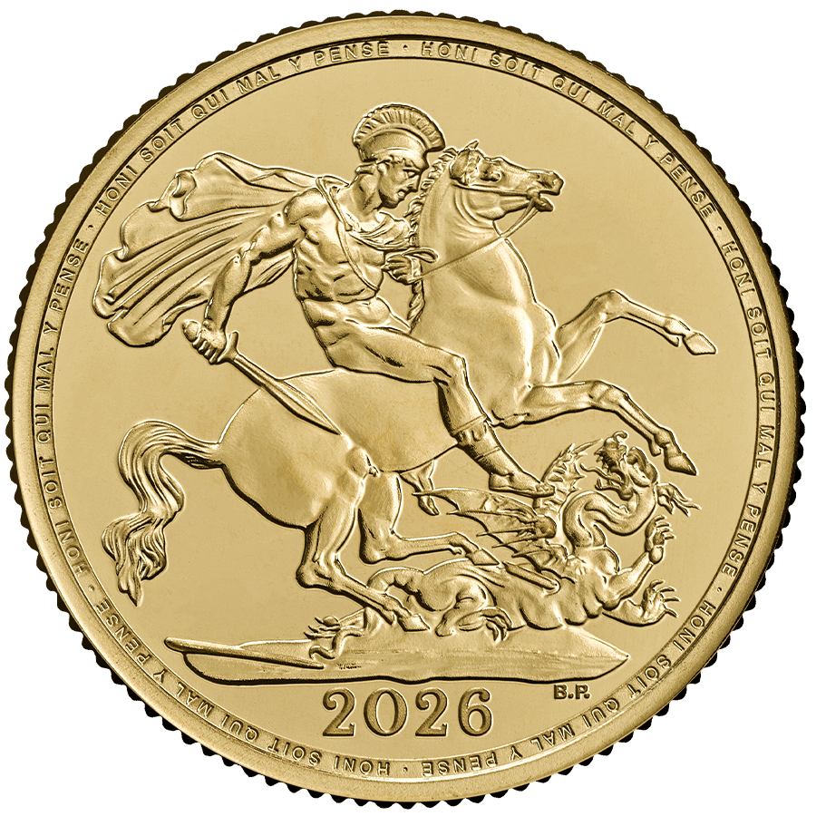 Die Ausgabe 2026 der Sovereign-Goldmünze vereint über tausend Jahre königlicher Münztradition mit einer Hommage an König Charles III. Mit ihrer 22-Karat-Legierung und ihrem zeitlosen Design ist sie eine liquide, vertrauenswürdige und historisch angesehene Anlage. Beachten Sie, dass Anlagegold in den meisten europäischen Ländern, darunter Frankreich, Italien, die Schweiz, Deutschland und das Vereinigte Königreich, von der Mehrwertsteuer befreit ist (0 % MwSt.).