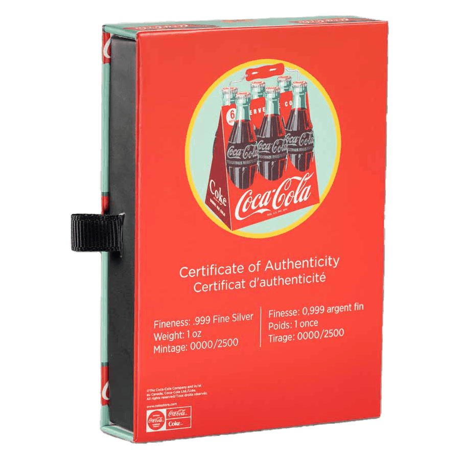 Dieses einzigartig geformte 1 Unze-Silberstück, gestaltet wie ein nostalgisches Coca-Cola-Schild, ist das perfekte Sammlerstück für Coca-Cola-Fans und Silberinvestoren. Mit einer limitierten Auflage von 2.500 Stück bietet es einen nostalgischen Einblick in die reiche Geschichte von Coca-Cola. Fügen Sie diesen besonderen Artikel noch heute Ihrer Sammlung hinzu!