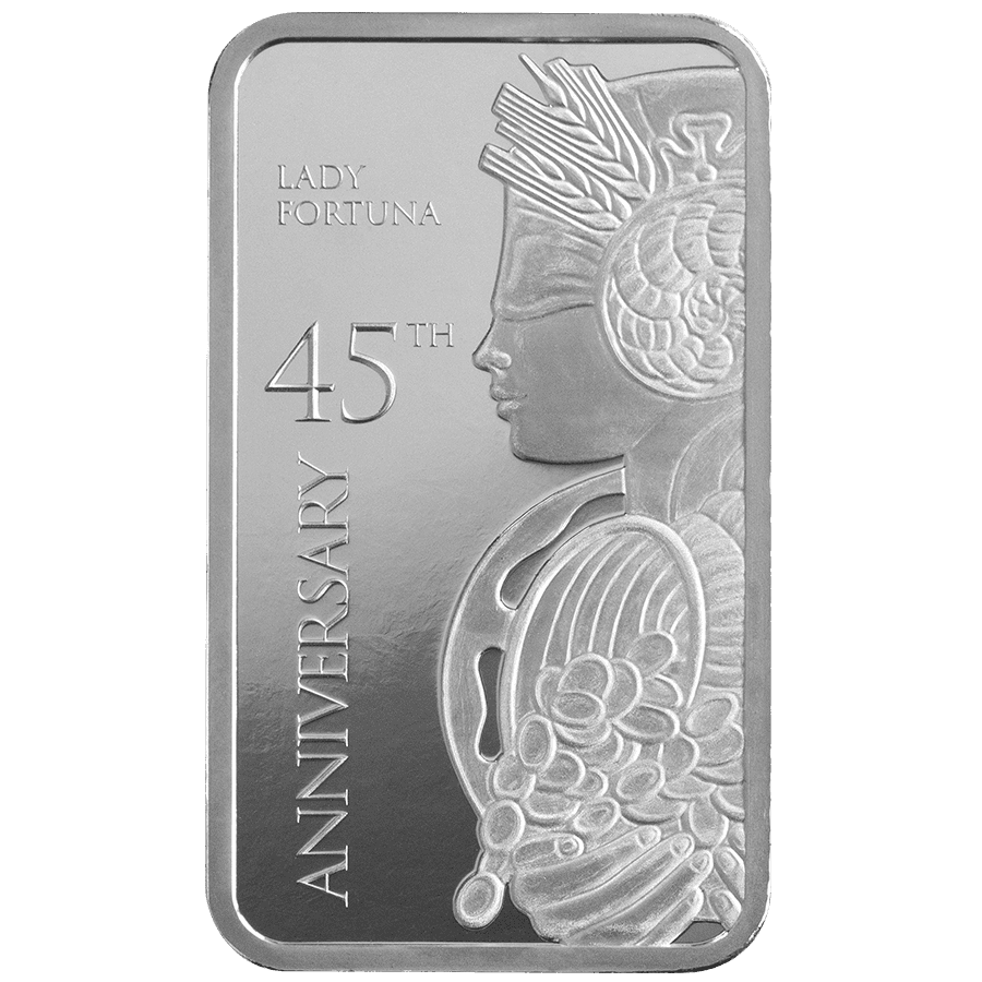 1 Unze Silberbarren - Lady Fortuna 45. Jubiläum