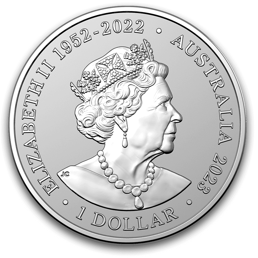 - Vorderseite: Zeigt das Porträt Ihrer Majestät Königin Elizabeth II. mit den Inschriften: „ELIZABETH II“, „1952-2022“, „AUSTRALIA 2023“ und dem Nennwert „1 DOLLAR“.