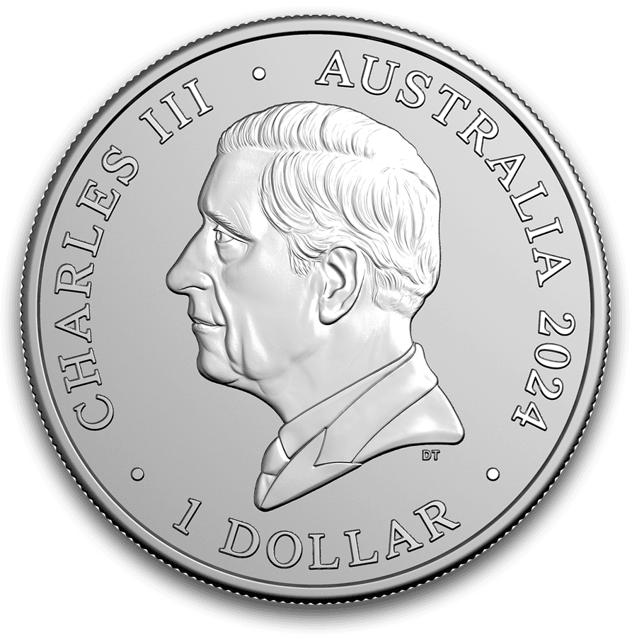 - Vorderseite: Zeigt das Porträt Seiner Majestät König Charles III., zusammen mit der Inschrift „$1 AUD“ und dem Jahr „2024“.