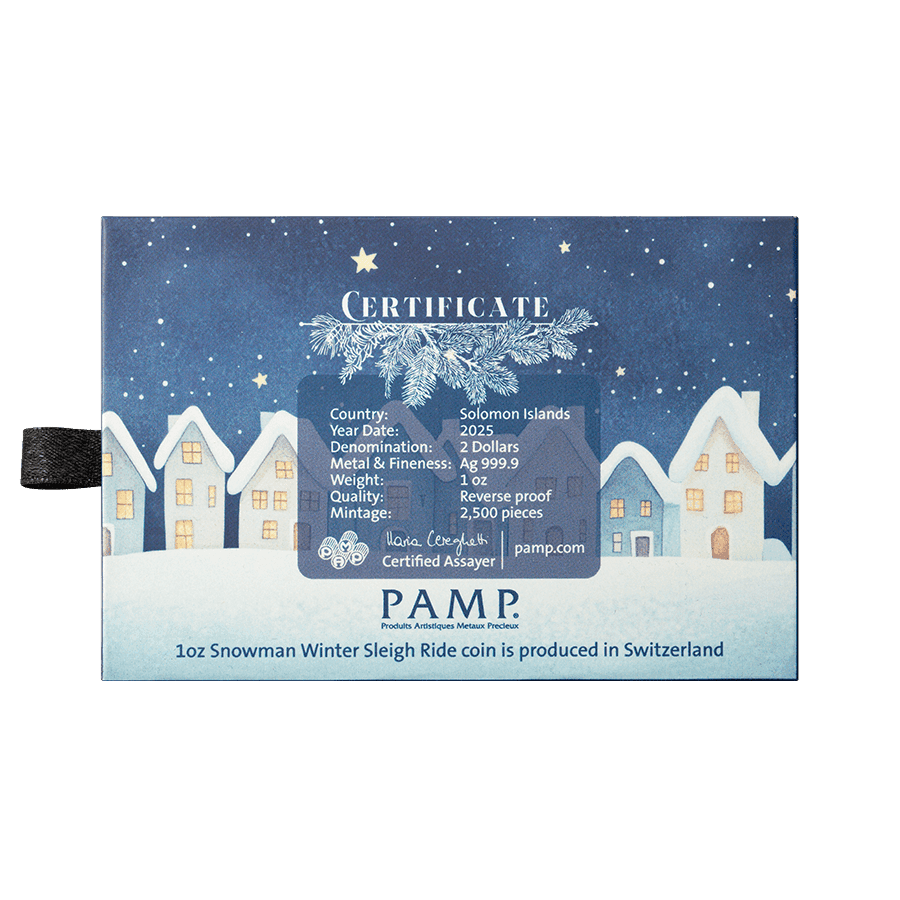 Diese festlich gestaltete, schneemannförmige Gedenkmünze ist eine fröhliche Hommage an die Winterzeit – verspielt, nostalgisch und kunstvoll gefertigt. Mit einer weltweiten Auflage von nur 2.500 Stück ist sie ideal für Sammler, Geschenkideen oder alle, die die Feiertage mit einem Hauch edlen Silbers feiern möchten.