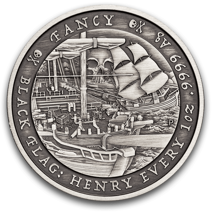 Diese Ausgabe verleiht dem beliebten Fancy-Motiv eine edle antike Patina, die Charakter und Tiefe betont. Eine Hommage an den Piraten Henry Every und seinen legendären Raubzug – die Münze erzählt eine Geschichte von Rebellion und Reichtum auf hoher See. Mit nur 1.500 Exemplaren und geprägt in 999,9 Feinsilber ist sie ein seltenes Sammlerstück, das Geschichte, Silberwert und besondere Veredelung in einer außergewöhnlichen Münze vereint.