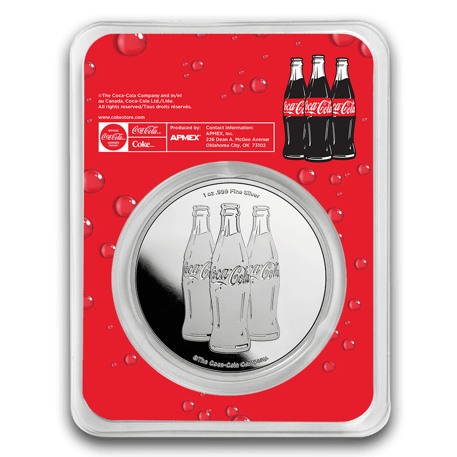 - Rückseite: Zeigt drei Abbildungen der berühmten Silhouette der Coca-Cola-Flasche.