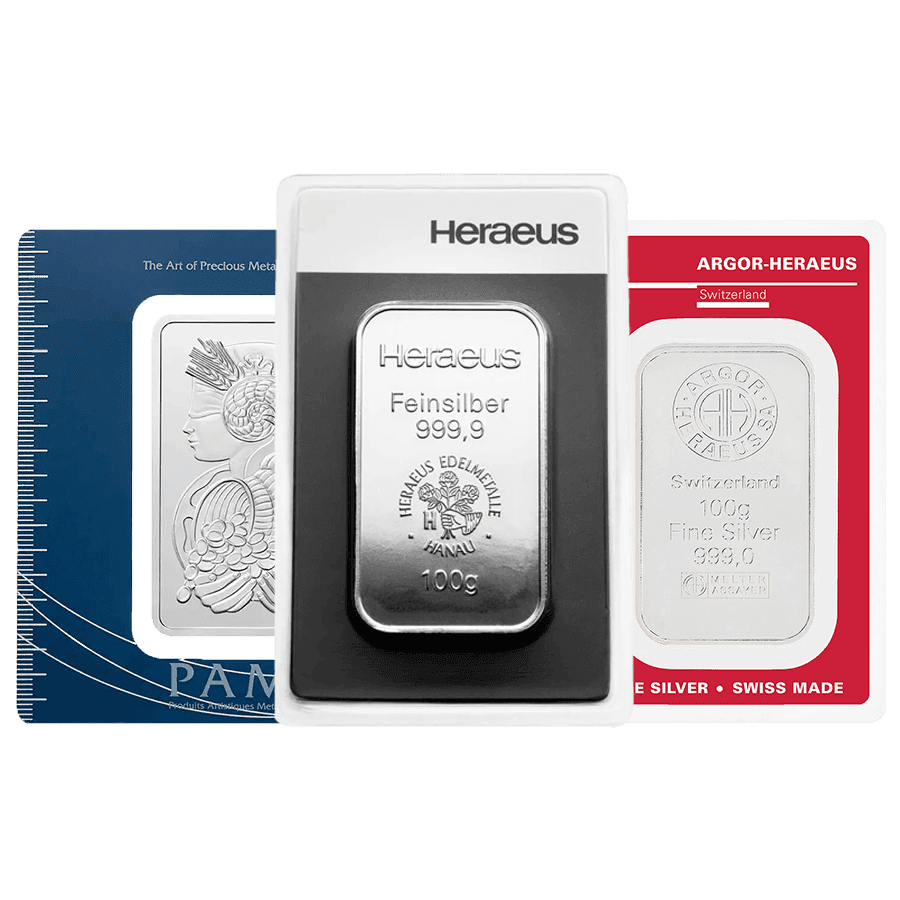 100 Gramm Silberbarren - Zufällige Prägung