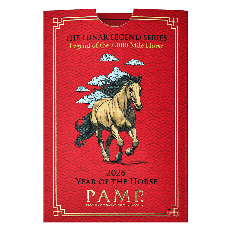 - Verpackung: Geliefert in farbenfroher, thematischer CertiPAMP™-Verpackung mit rotem Design und illustriertem Schuber. Jeder Barren ist einzeln nummeriert und sicher versiegelt.