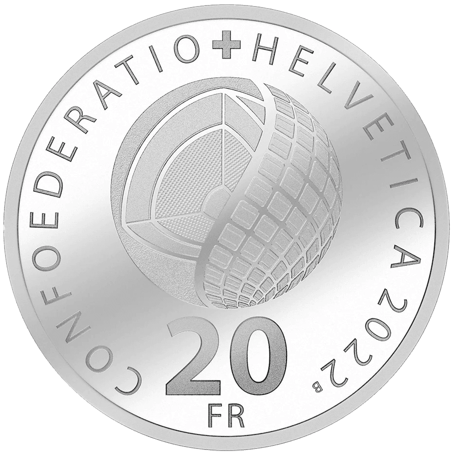 - Vorderseite: Zeigt ein Schweizer Kreuz mit der Inschrift „CONFOEDERATIO HELVETICA 2022“ und dem zentralen Nennwert „20 FR“.