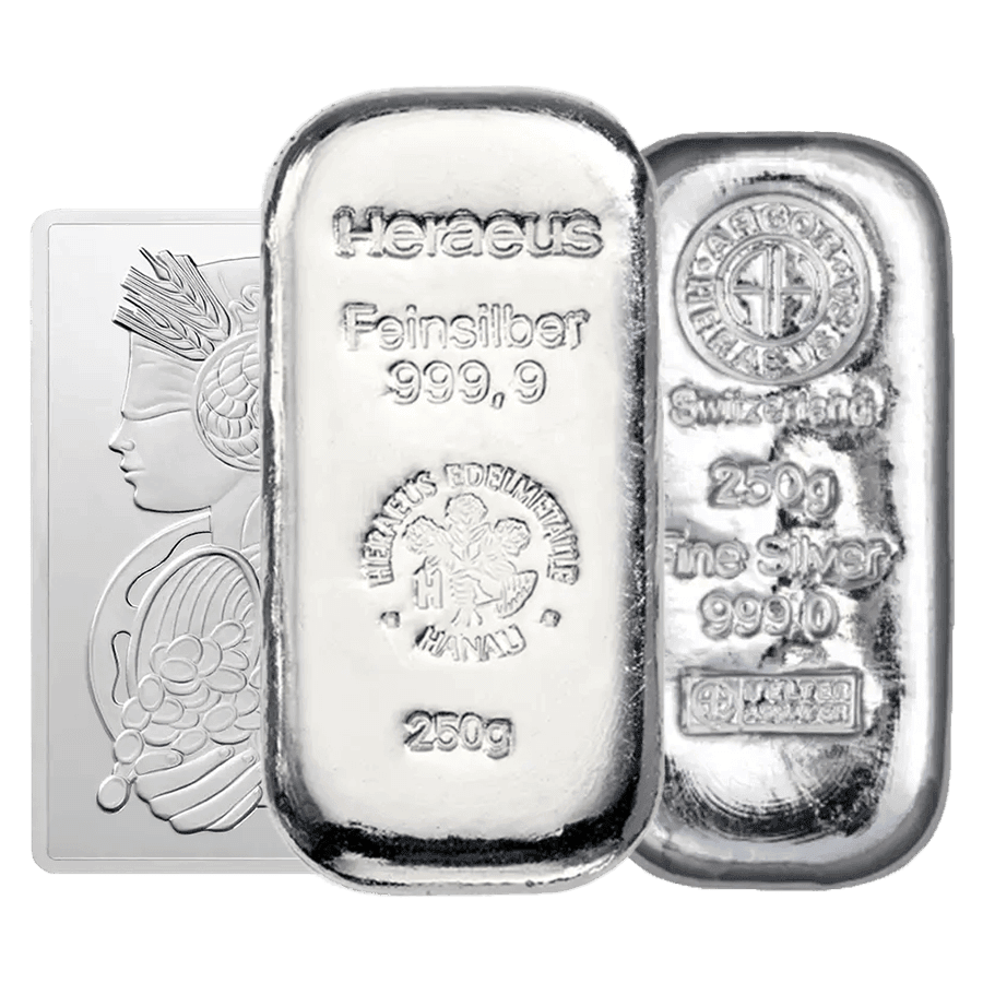 Die Wahl eines 250 Gramm Silberbarrens mit einer zufälligen Prägung bietet einen erschwinglichen Einstieg in die Edelmetallinvestition. Silber ist ein vielseitiger Vermögenswert, der für seine industriellen Anwendungen in der Elektronik und erneuerbaren Energien geschätzt wird. Gleichzeitig dient es als greifbarer sicherer Hafen, insbesondere im Vergleich zu volatileren Anlagen wie Aktien und Kryptowährungen.