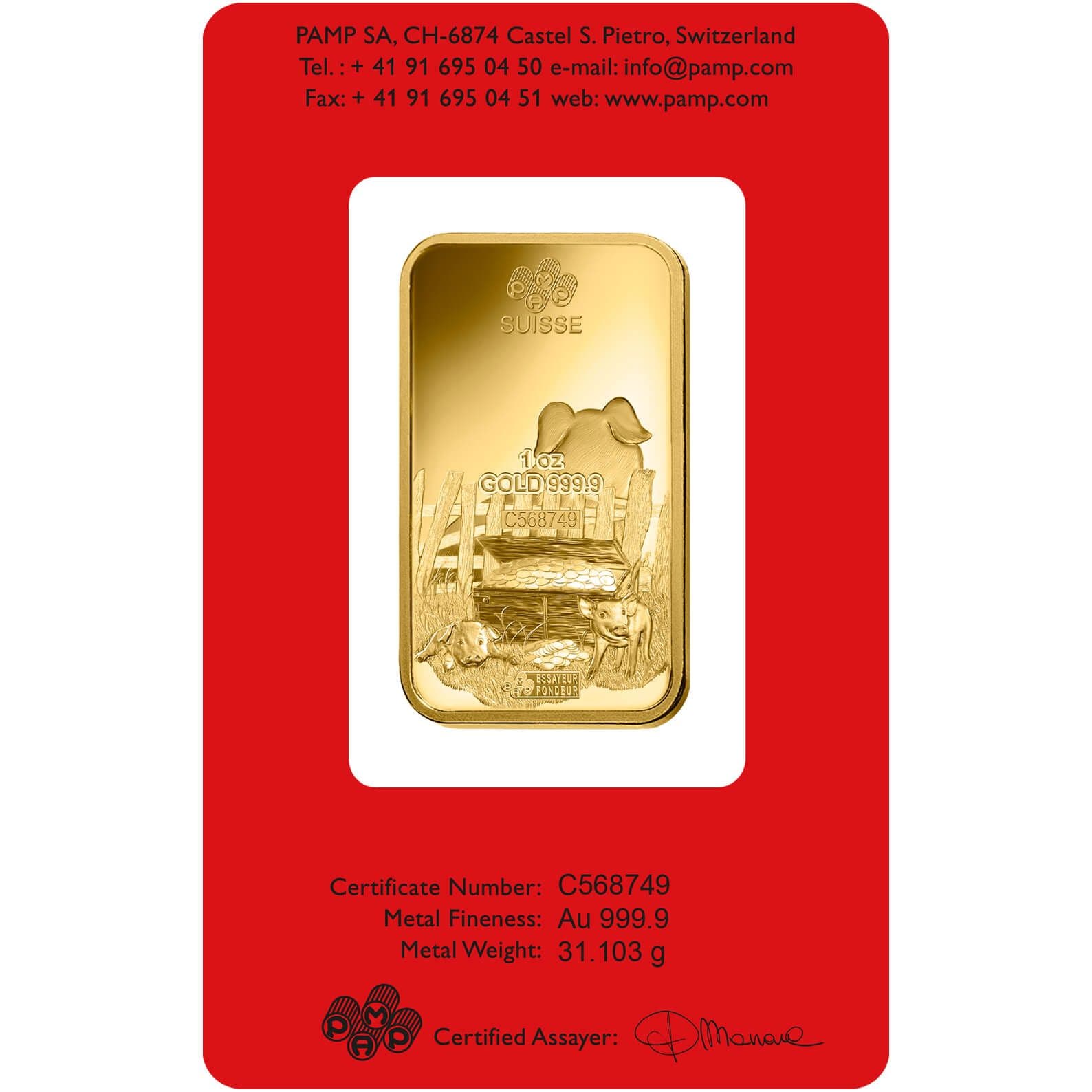 1 ounce Gold Bar - PAMP Suisse Lunar Pig