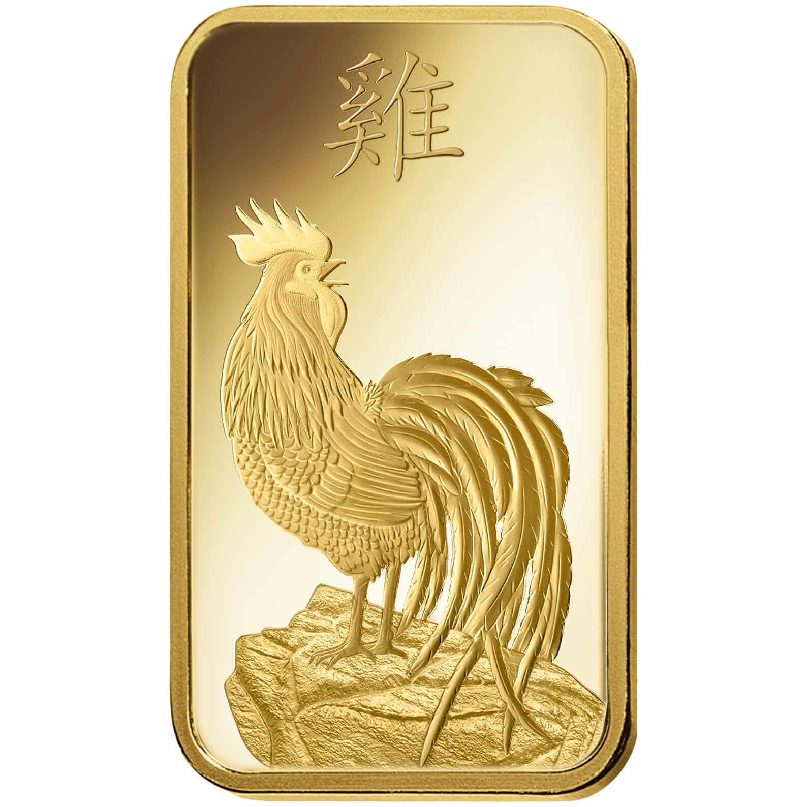 The beautiful, 100 gram Year of the Rooster gold ingot features a striking and innovative design effect that portrays the Rooster front-to-back – a hallmark of the PAMP Lunar Calendar Series. The obverse of the ingot also shows the Chinese symbol that translates to ‘Rooster’ in English, while the reverse features its weight, purity and unique serial number.