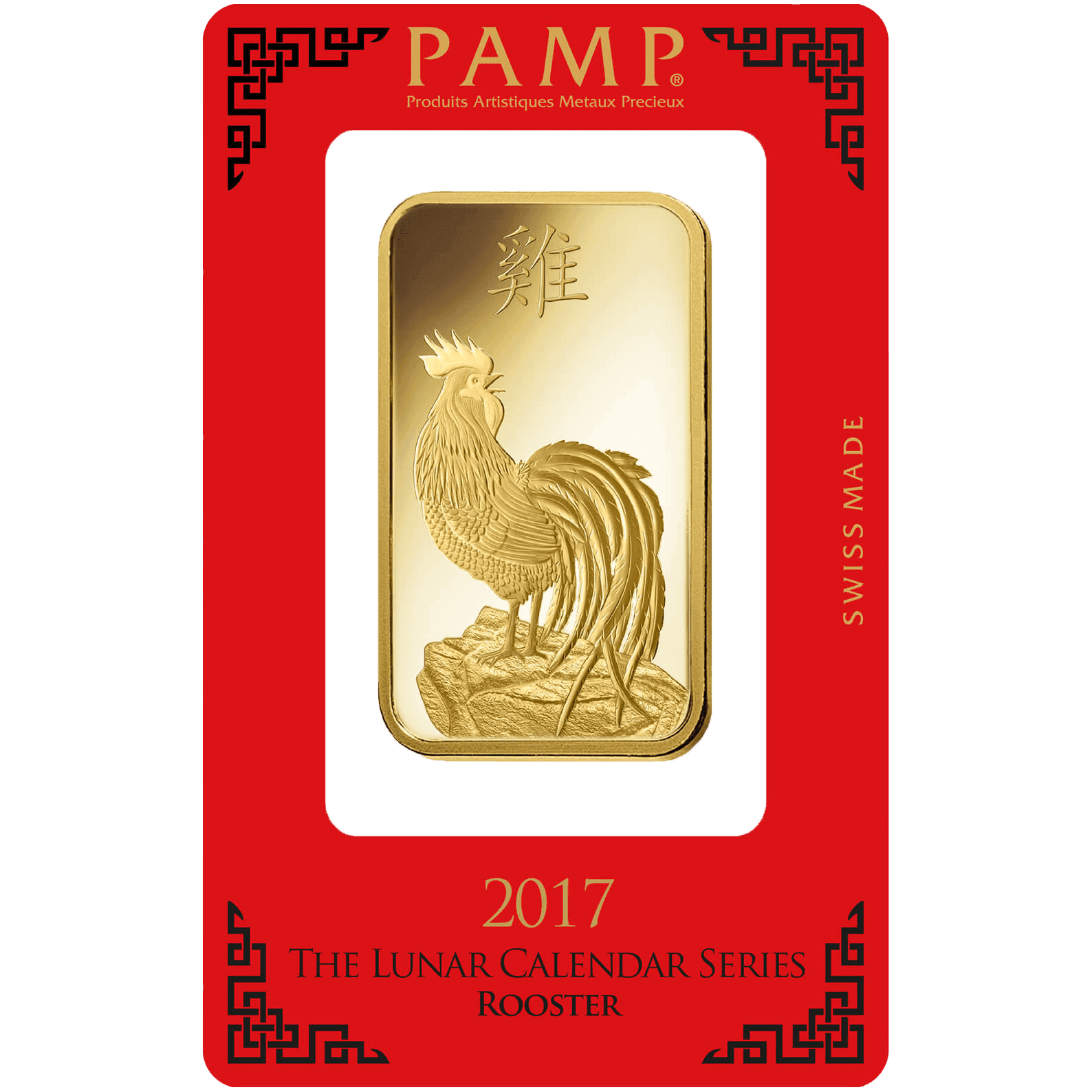 In commemoration of the Chinese New Year, the 2017 edition of PAMP’s popular Lunar Calendar Series celebrates the Year of the Rooster with a stunning ingot design that brilliantly reflects the qualities attributed to the animal throughout Chinese culture.