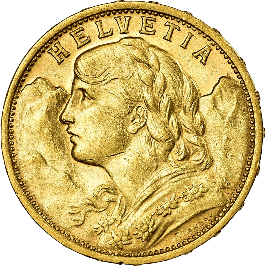 1903 Helvetia Vreneli Gold Coin - 20 Swiss Francs