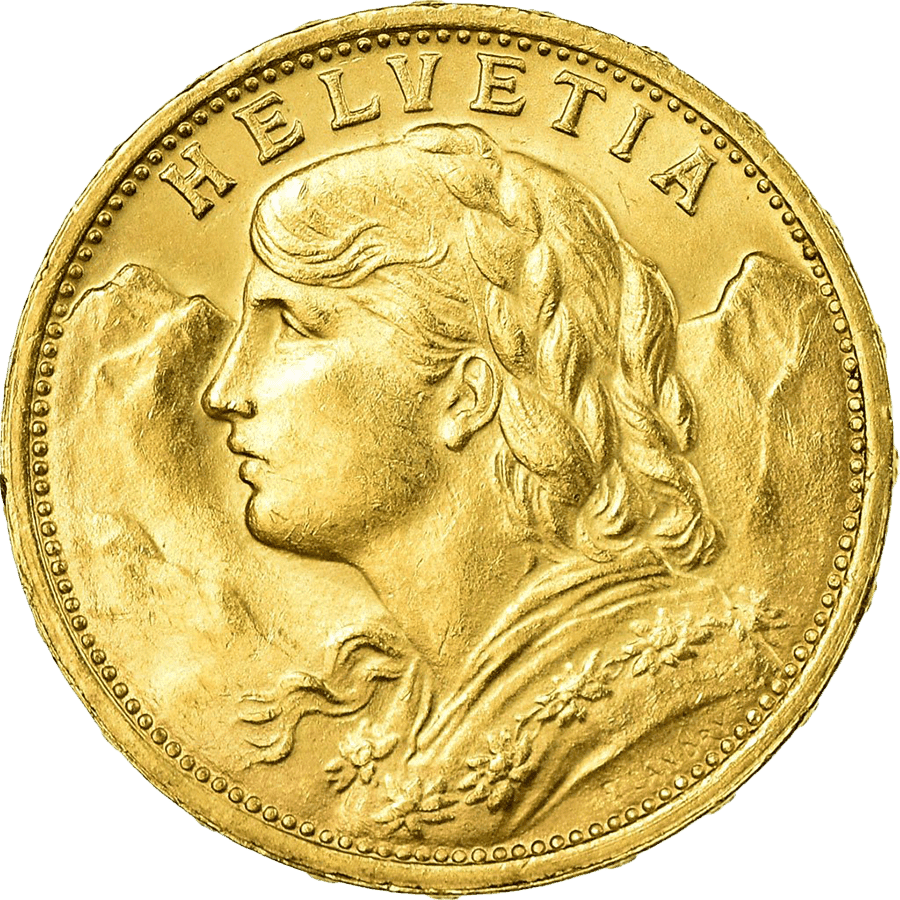 1908 Helvetia Vreneli Gold Coin - 20 Swiss Francs