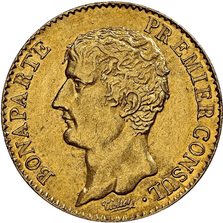 - Obverse: Features a left-facing portrait of Napoléon Bonaparte as First Consul, with the inscription “BONAPARTE PREMIER CONSUL.”