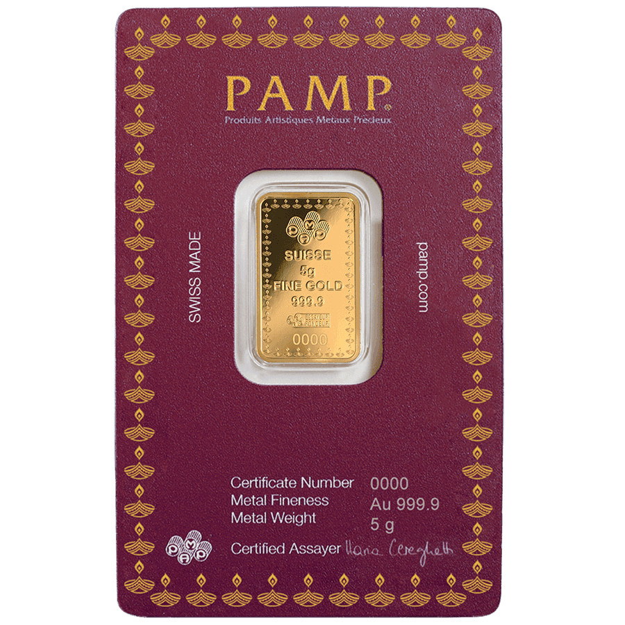 The Diwali gold bar is produced by PAMP, the global leader in precious metals. PAMP gold bars, like the famous Lady Fortuna, are very popular with investors and collectors alike.