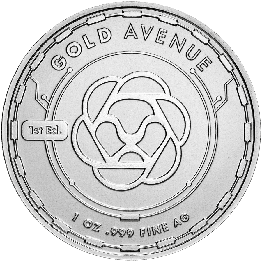 - Reverse: Displays the GOLD AVENUE logo with "1st Ed." inscribed, along with weight, purity, and the name "GOLD AVENUE". The design is bordered by intricate circuit-like patterns.