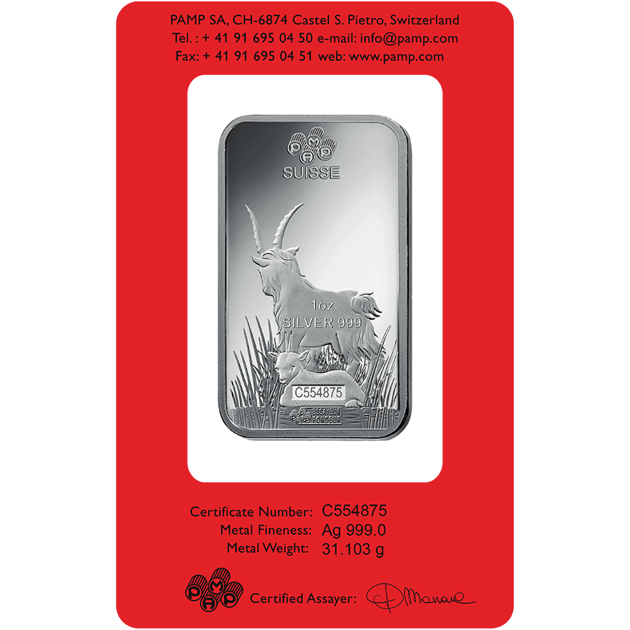 1 ounce Silver Bar - PAMP Suisse Lunar Goat