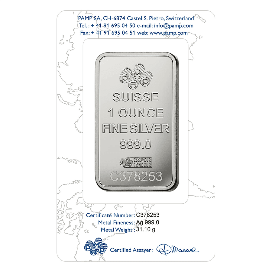 1 ounce Rosa Silver Bar - PAMP Suisse