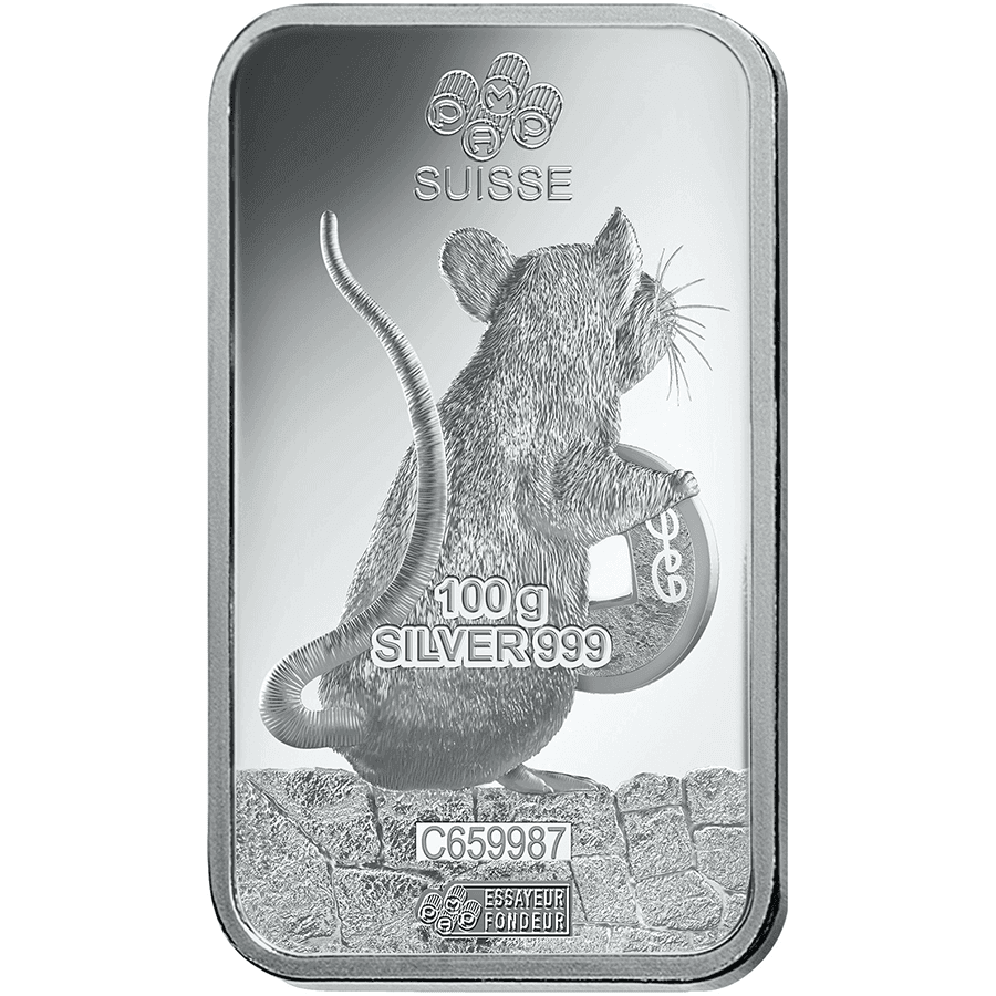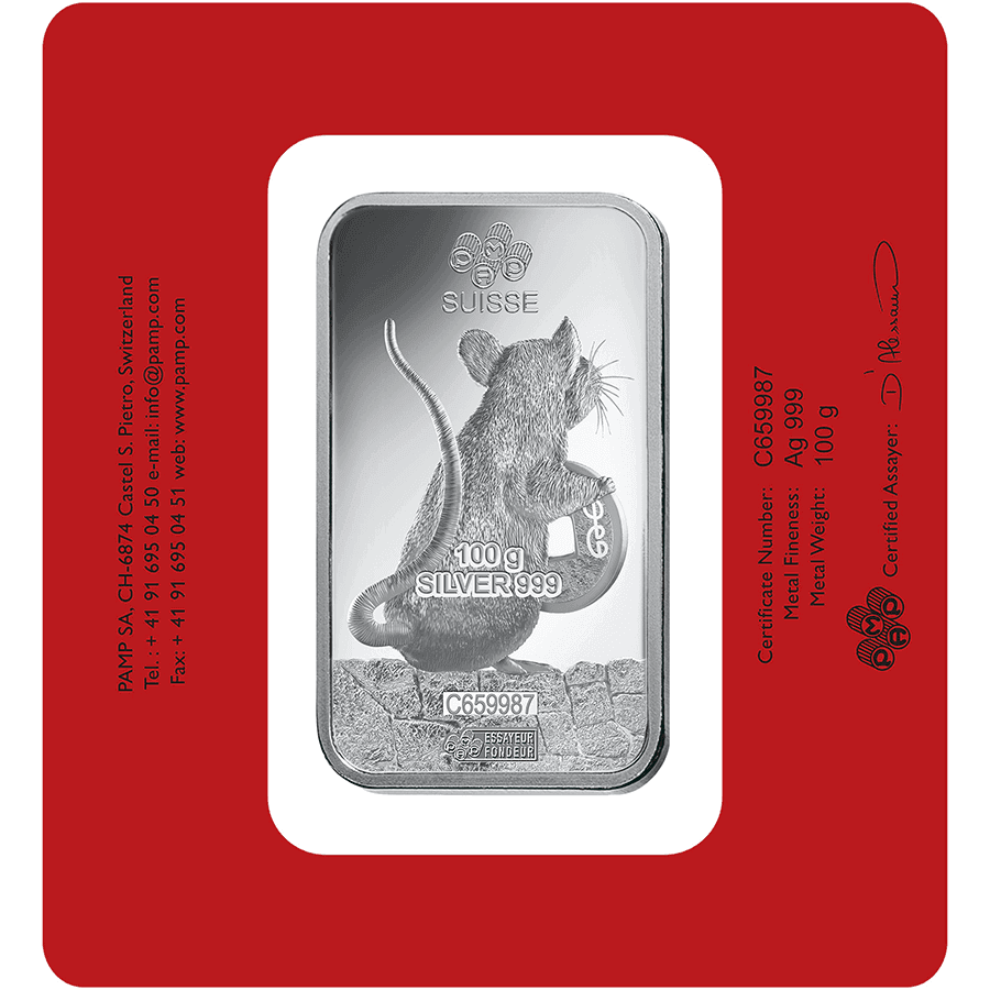 100 gram Silver Bar - PAMP Suisse Lunar Rat