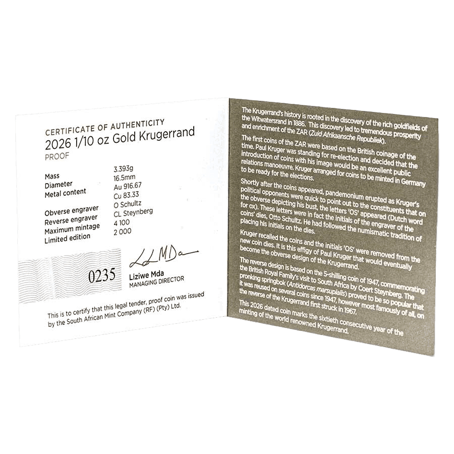 1/10 onza Moneda de Oro Krugerrand Proof 2026