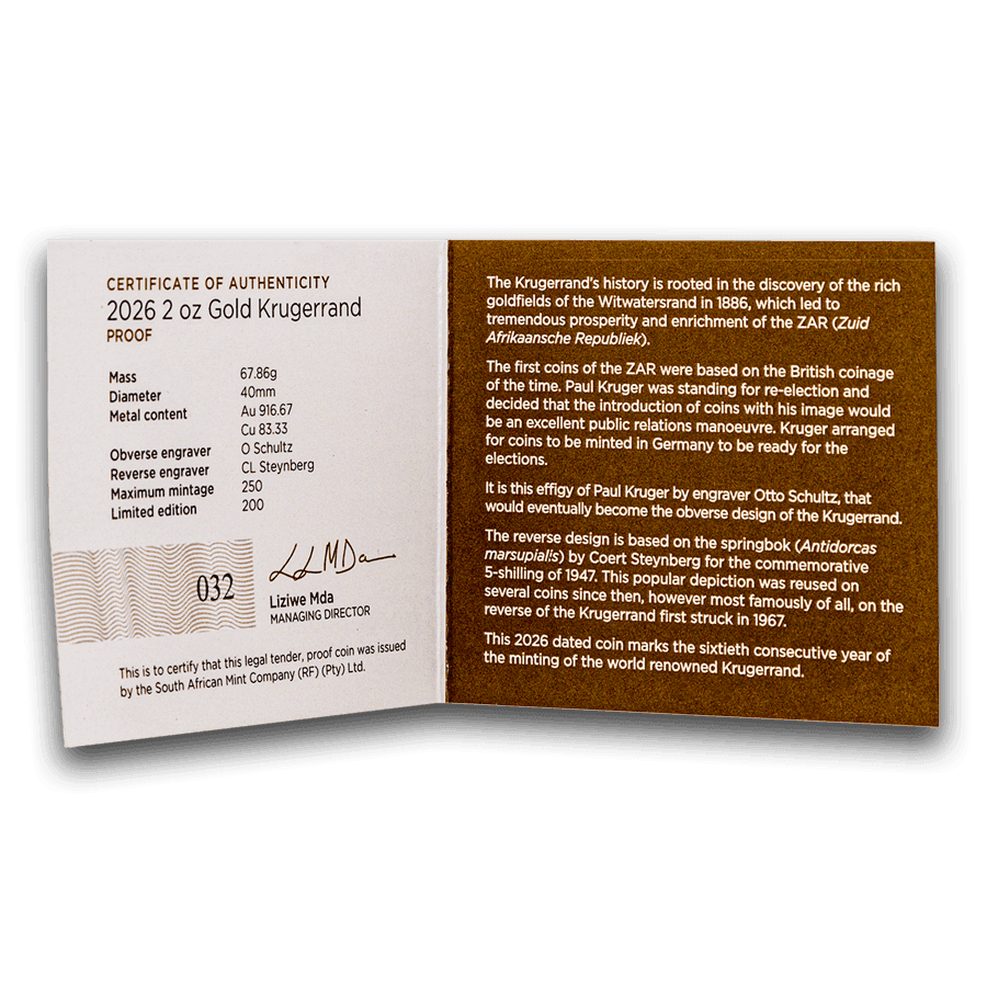 2 onzas Moneda de Oro Krugerrand Proof 2026