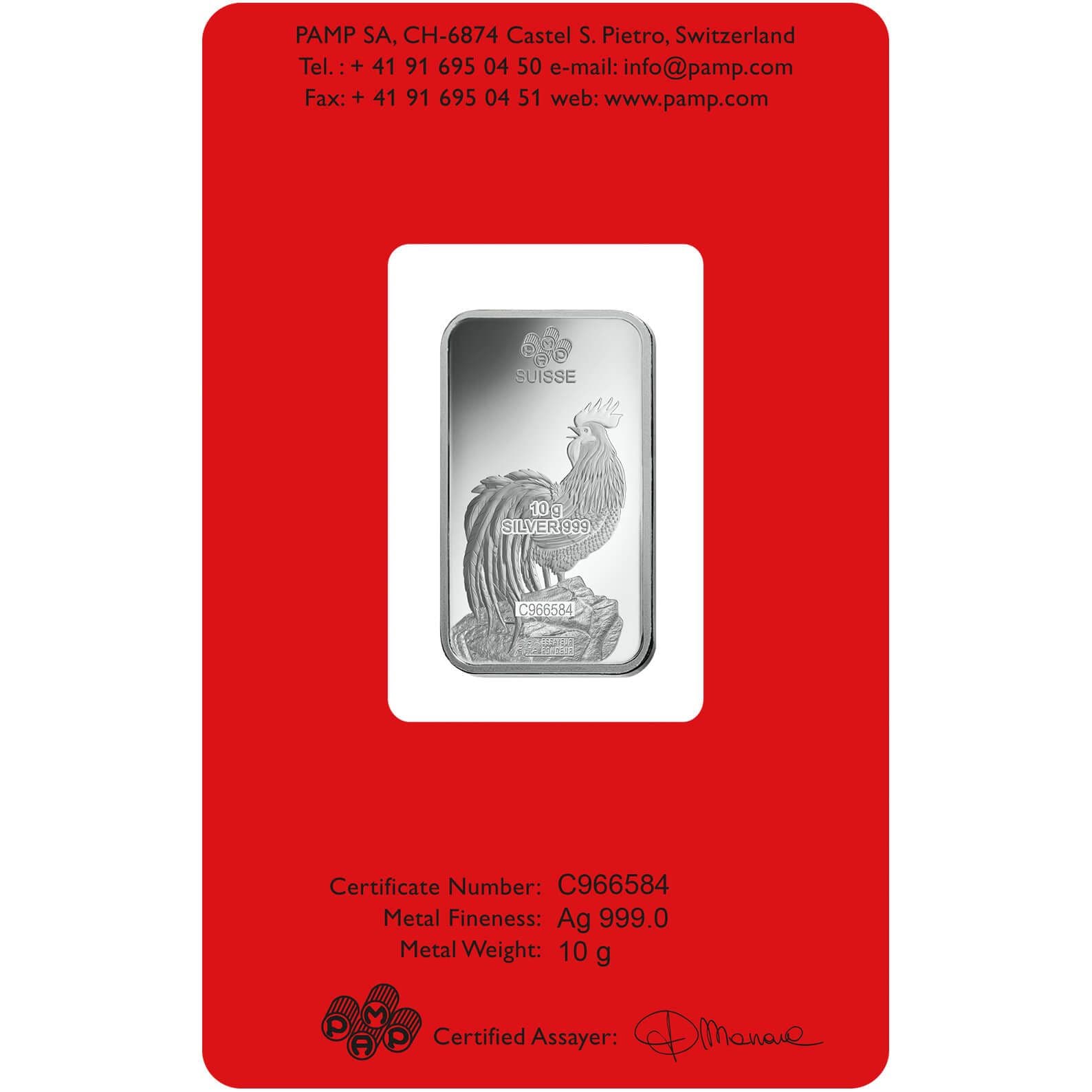 Lingote de Plata de 10 g - PAMP Suisse Lunar Gallo