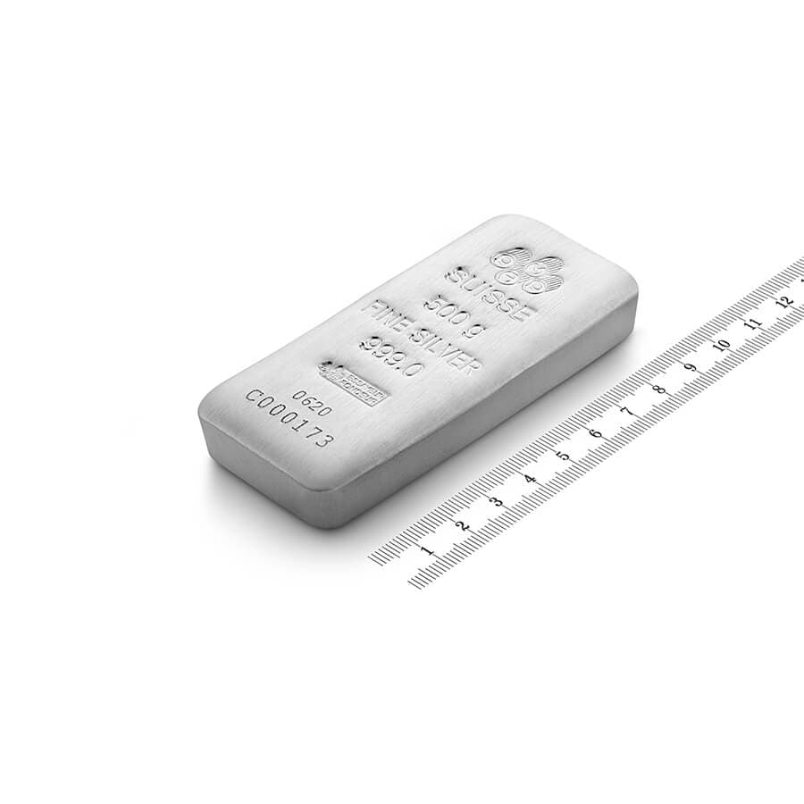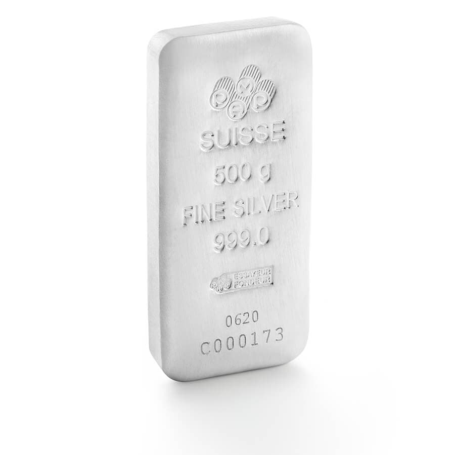 El lingote de plata de 500 gramos (16,07 onzas) producido por PAMP es uno de los lingotes de plata más vendidos del mundo.
