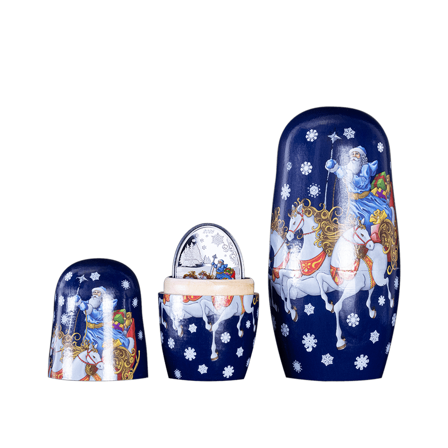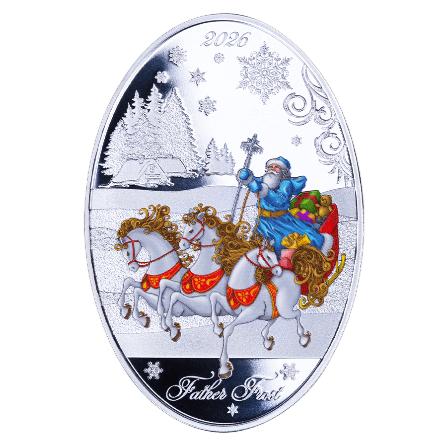 - Caractéristiques uniques : Pièce ovale en finition Proof, ornée de détails givrés et colorés, limitée à 5 000 exemplaires numérotés individuellement. Présentée dans un coffret en forme de poupée russe festive: un cadeau ou objet de collection idéal pour la saison des fêtes.