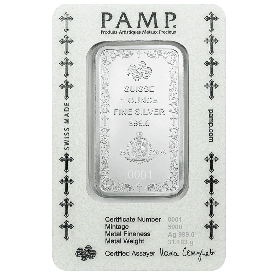 1 once Pièce d’Argent en Forme de Lingot - Croix chrétienne
