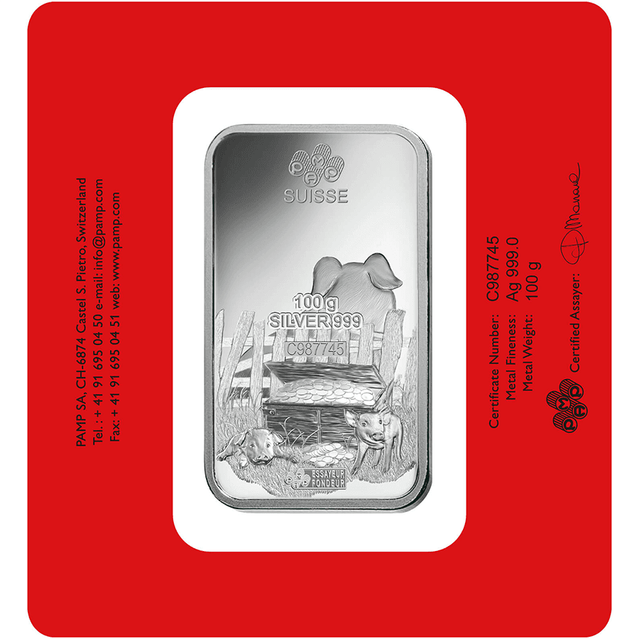 100 grammes Lingotin d'Argent - PAMP Suisse Lunar Cochon