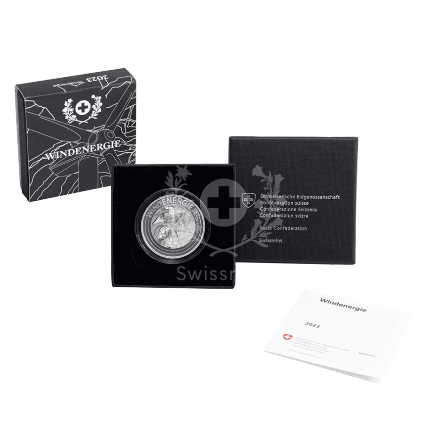 Cette pièce fait partie de la série "Énergie du futur" de Swissmint, célébrant la promesse de l'énergie éolienne et son rôle dans la création d'un avenir plus durable. Avec son design innovant et son effet lumineux, elle est parfaite pour les collectionneurs sensible au dévoloppement durable et qui apprécient les thèmes avant-gardistes. Un véritable objet de collection en argent, captivant et original.