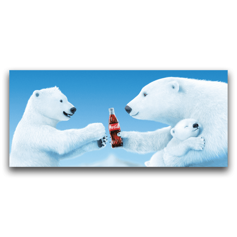 · Verso : Représente deux ours polaires contemplant le ciel nocturne tout en buvant du Coca-Cola®, à côté du logo emblématique de Coca-Cola®.