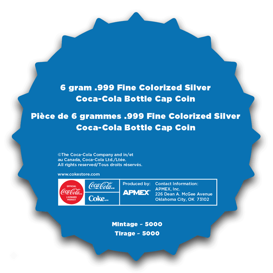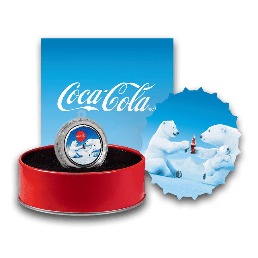 Célébrez le 30e anniversaire des célèbres ours polaires de Coca-Cola® avec cette édition limitée de Capsule de bouteille en argent de 6 grammes. Cette pièce de collection festive est accompagnée d'une capsule unique, ce qui en fait un souvenir ou un cadeau idéal pour les fêtes de fin d'année. Ajoutez cette charmante pièce à votre collection dès aujourd'hui !