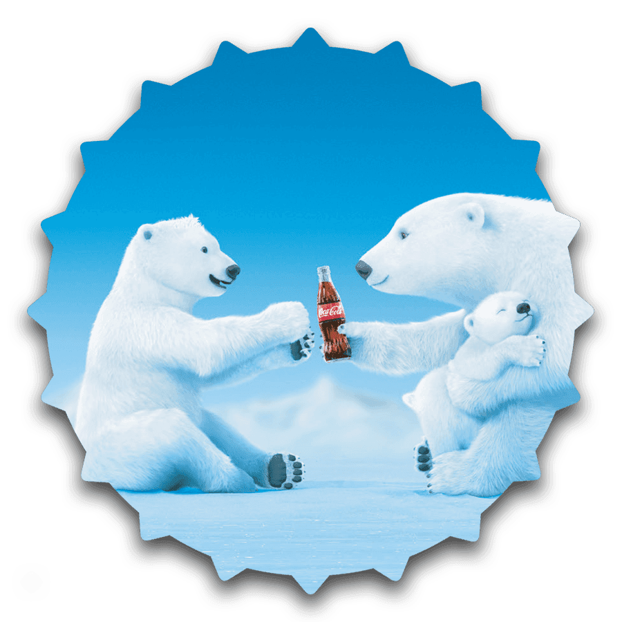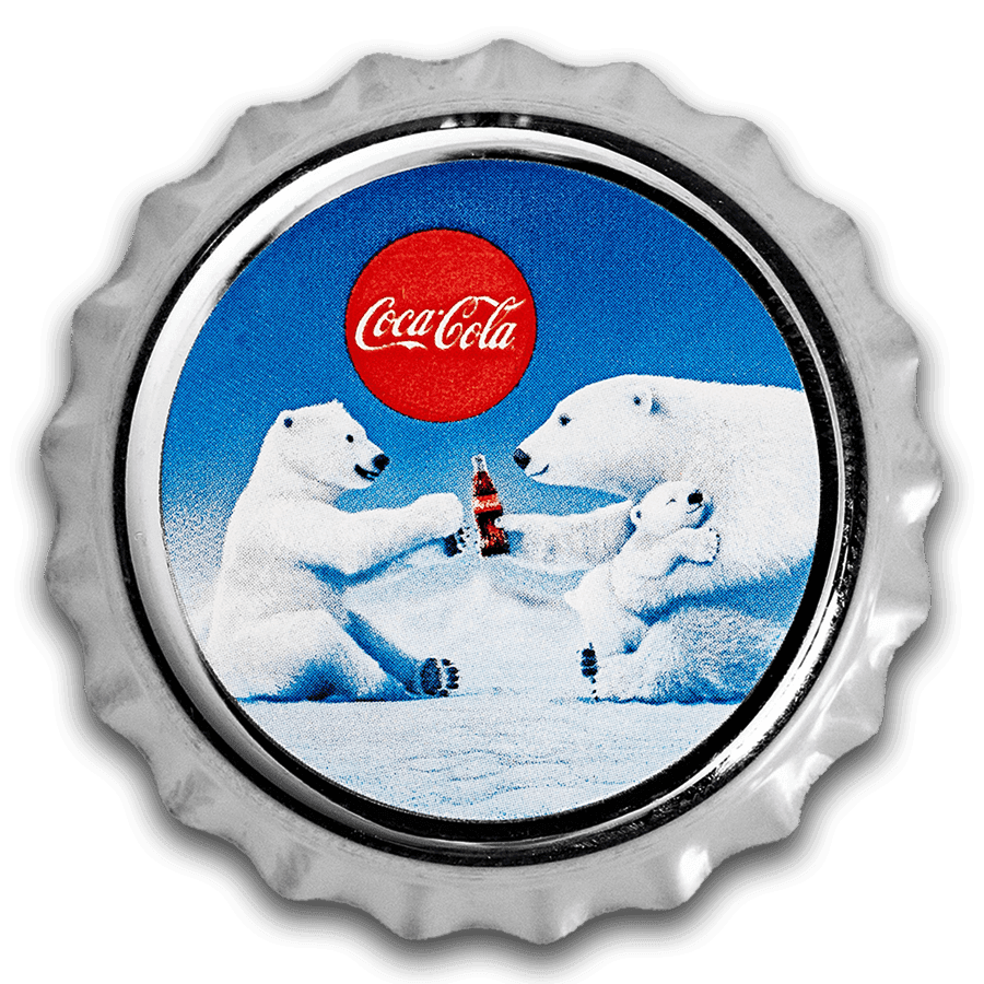 · Recto : Comprend une capsule de bouteille représentant une famille d'ours polaires partageant un Coca® avec le logo Coca-Cola® au-dessus.