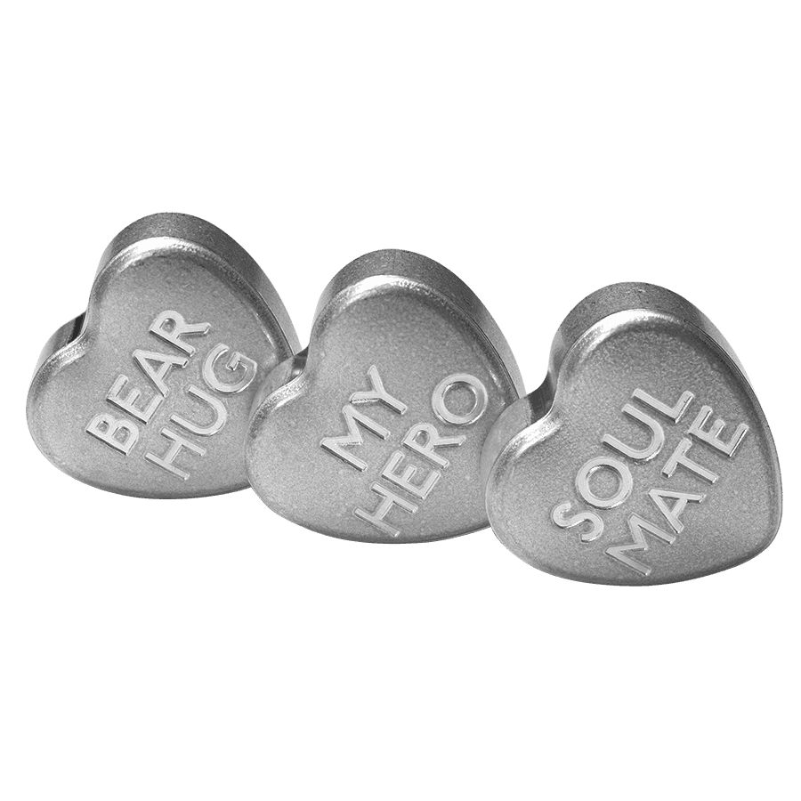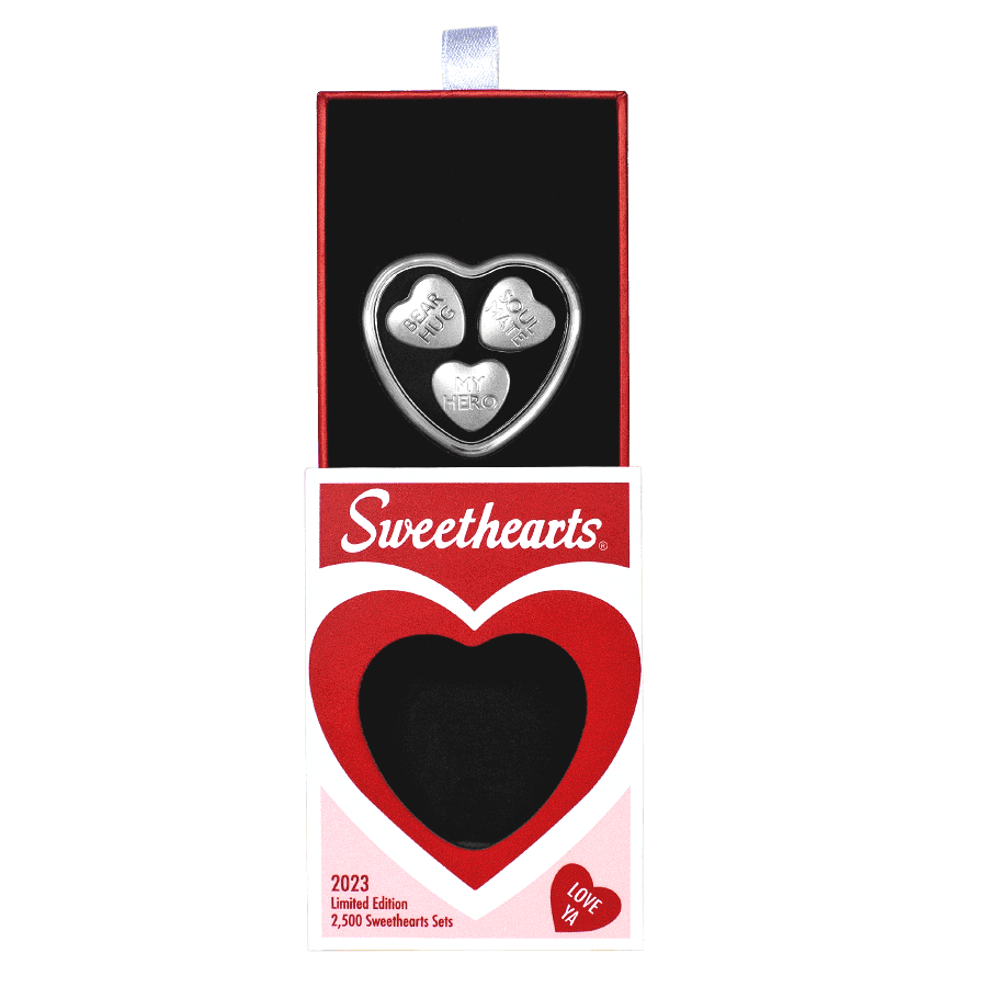Produits par PAMP, les bonbons en argent Sweethearts peuvent constituer un excellent cadeau pour vos proches, en particulier pour ceux qui ont une affinité avec les métaux précieux. Ces répliques en argent en édition limitée sont une façon unique et attentionnée d'exprimer votre amour et votre affection.