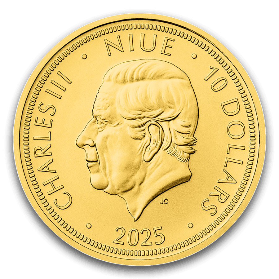 - Avers : Représente le portrait du Roi Charles III accompagné des inscriptions « NIUE · 10 DOLLARS · 2025 », confirmant son statut de monnaie légale.
