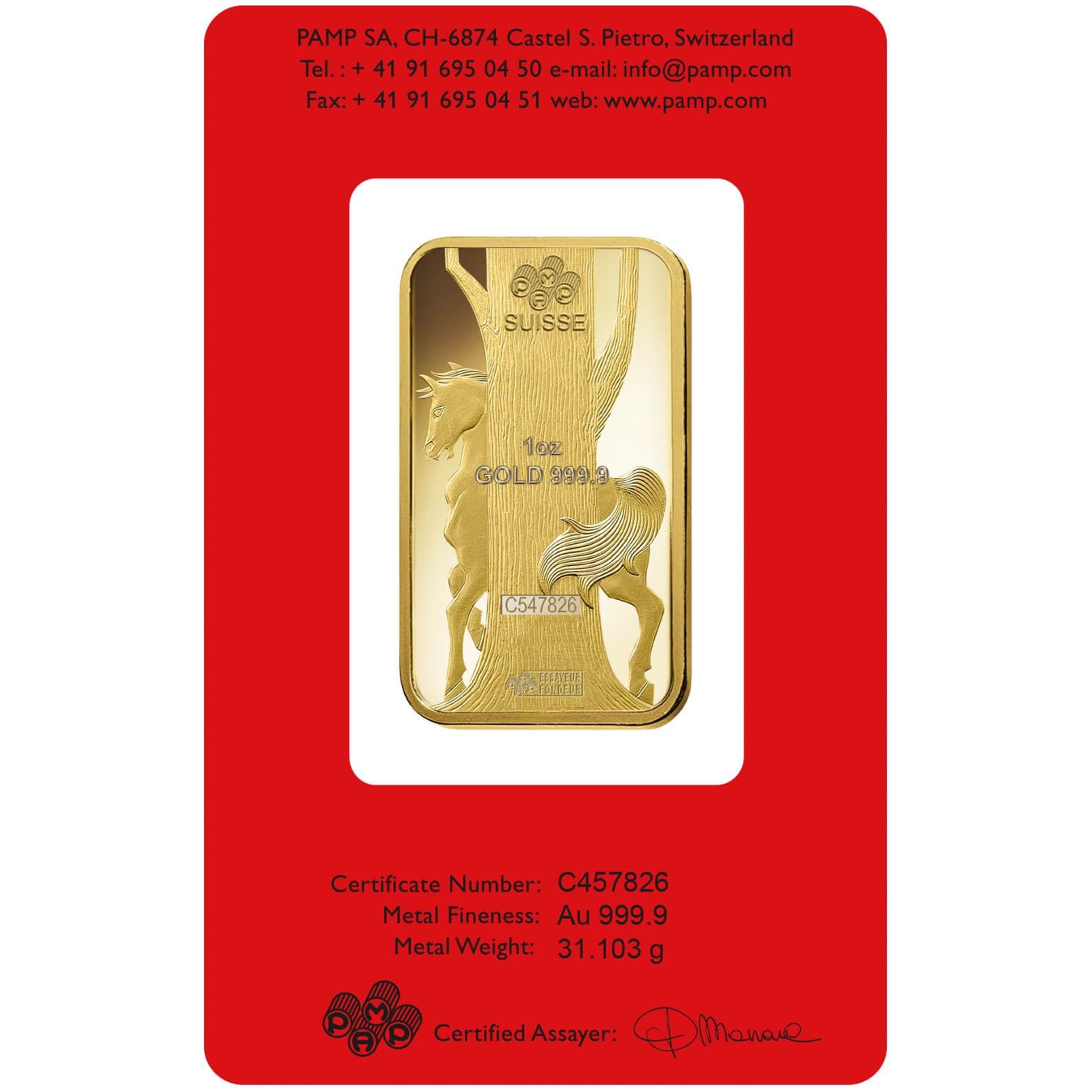 1 once lingotin d'or pur 999.9 - PAMP Suisse Lunar Cheval