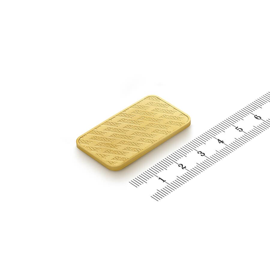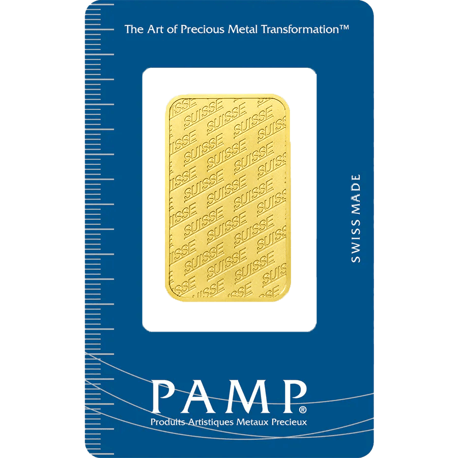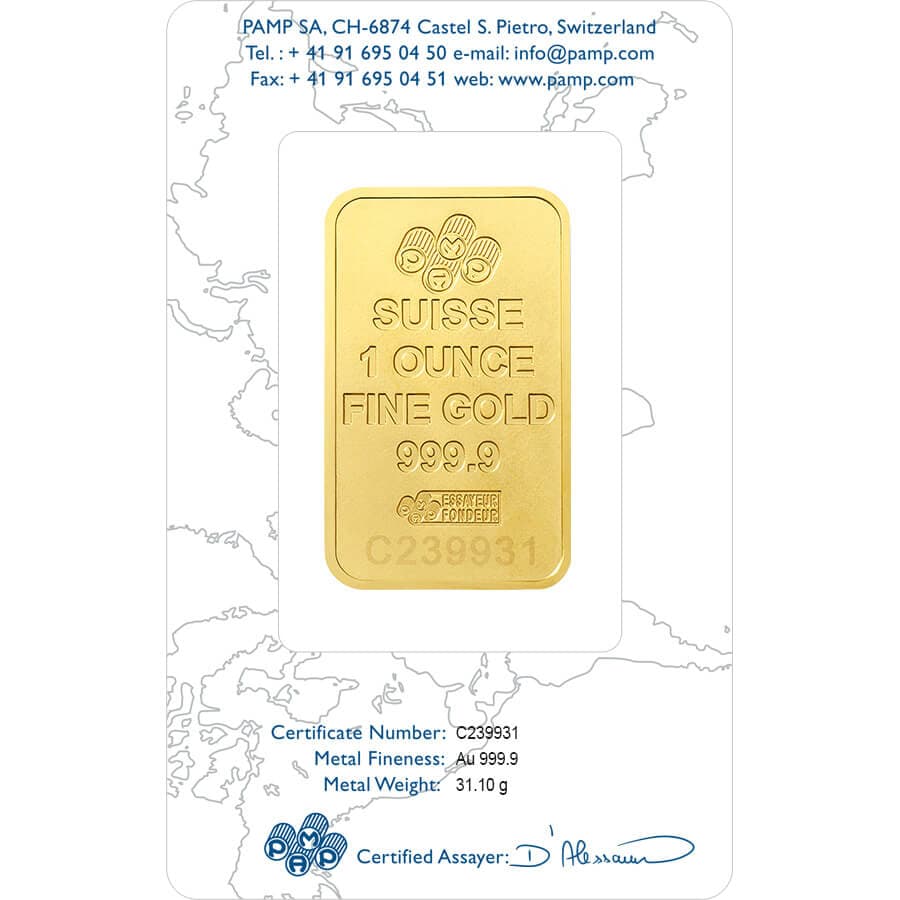 Ce lingot d'une once (31,10 grammes) contient 99,99% d'or pur (24 carats). Produit par la prestigieuse raffinerie suisse PAMP.