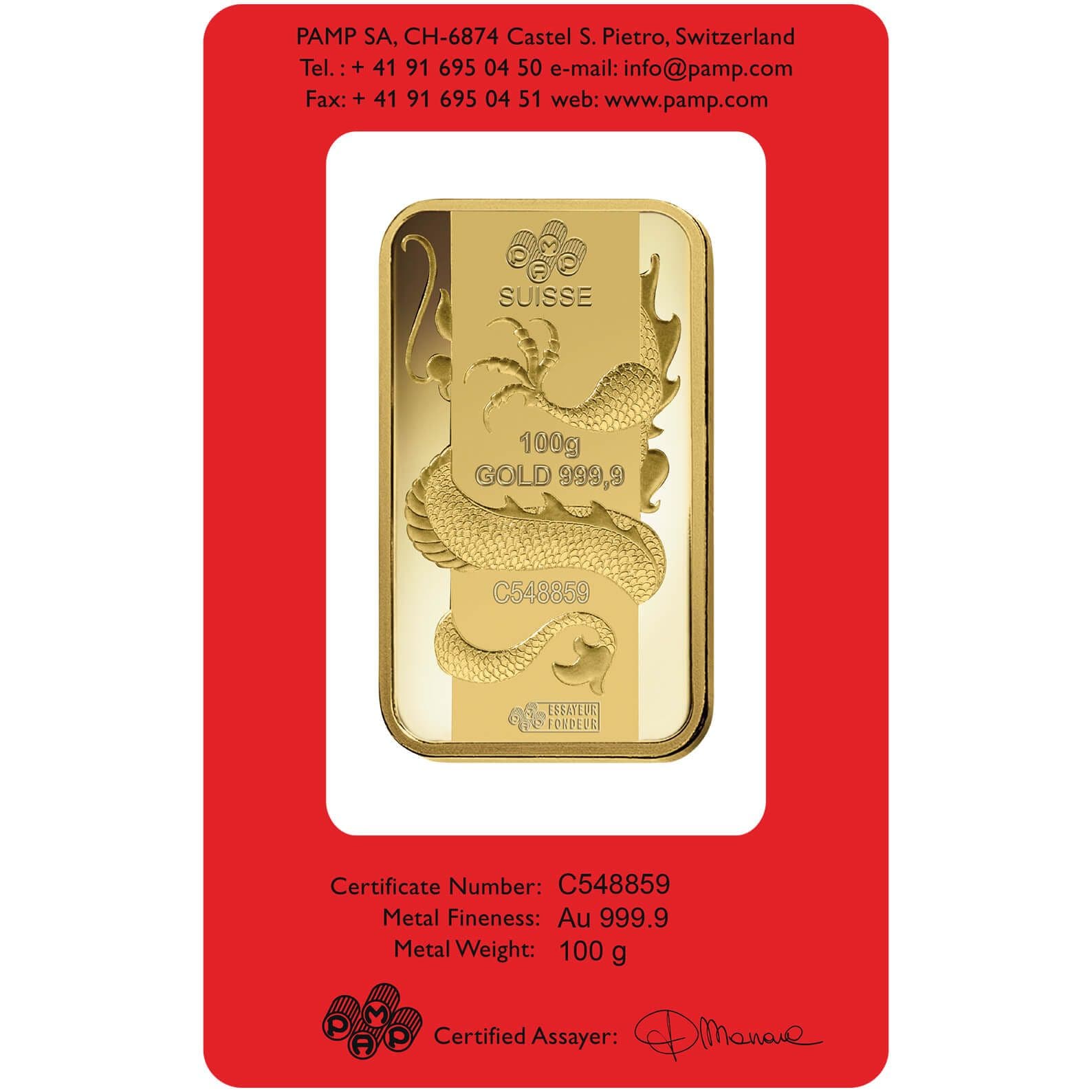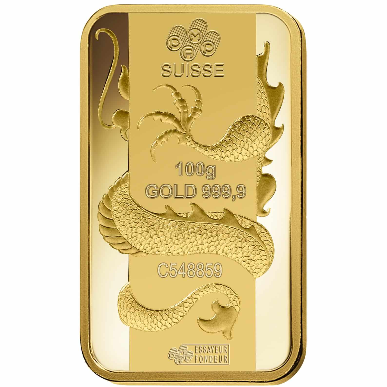 100 grammes Lingotin d'Or - PAMP Suisse Lunar Dragon